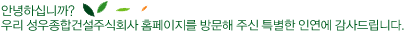 ¼º¿ìÁ¾ÇհǼ³À» ¹Ï°í °ø»ç¸¦ ¸Ã°Ü ÁֽаÇÃàÁÖ ¿©·¯ºÐ²² ȨÆäÀÌÁö Áö¸éÀ» ºô¾î Áø½ÉÀ¸·Î ±íÀº °¨»ç¸¦ µå¸³´Ï´Ù.